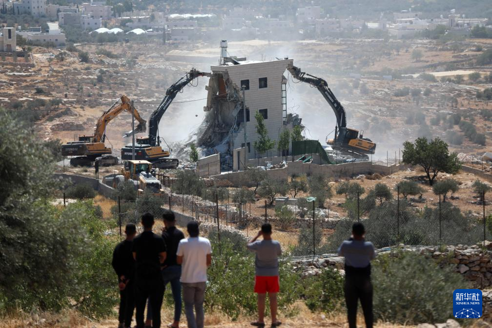 7月14日,在約旦河西岸的伯利恒地區(qū),以方人員駕駛工程車輛拆除巴勒斯坦人的房屋。