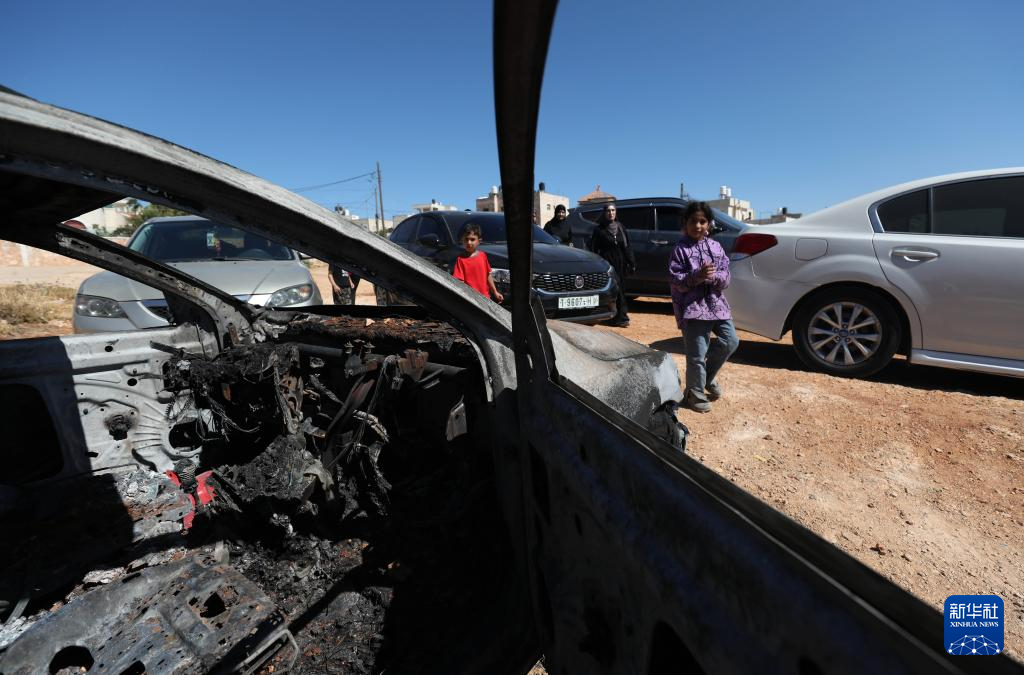 這是6月26日在約旦河西岸拉姆安拉以東的馬利克村拍攝的損毀汽車(chē)。