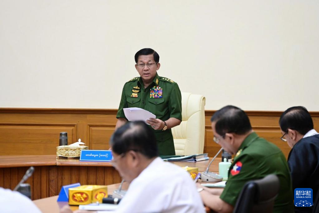 這張緬甸官方媒體發(fā)布的照片顯示,7月31日,緬甸領導人敏昂萊在內比都舉行的國防和安全委員會會議上發(fā)言。