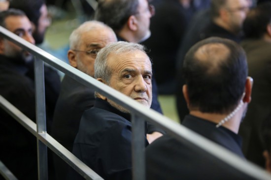 7月2日,伊朗首都德黑蘭,伊朗總統(tǒng)佩澤希齊揚參加紀(jì)念儀式。新華社發(fā)