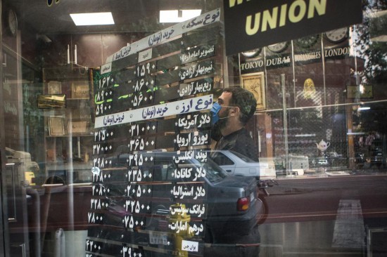 2020年10月14日,一名工作人員在伊朗德黑蘭一處外幣兌換所整理櫥窗。新華社發(fā)(艾哈邁德·哈拉比薩斯攝)