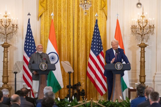 2月13日,美國總統(tǒng)特朗普(右)與到訪的印度總理莫迪在華盛頓白宮出席聯(lián)合記者會。新華社記者胡友松攝