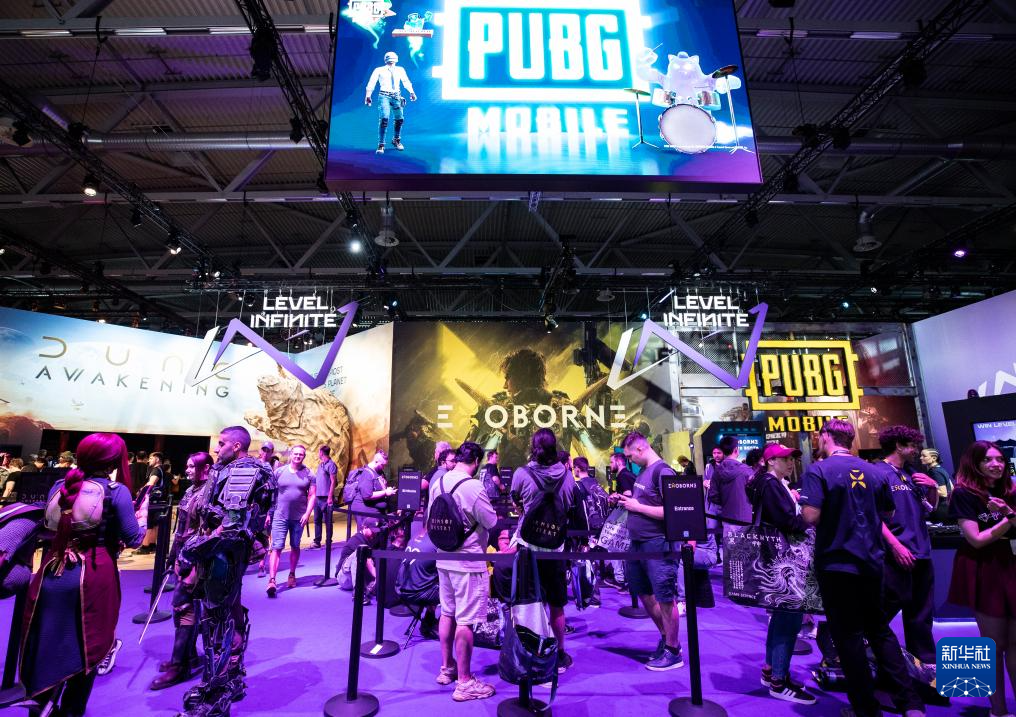 8月21日,在德國(guó)科隆,參觀者在科隆游戲展騰訊展臺(tái)排隊(duì)試玩游戲。