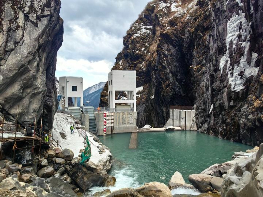 這是2025年3月17日在尼泊爾中北部拉蘇瓦縣拍攝的三金考拉水電站大壩。新華社發(fā)(中國港灣工程有限責任公司供圖)