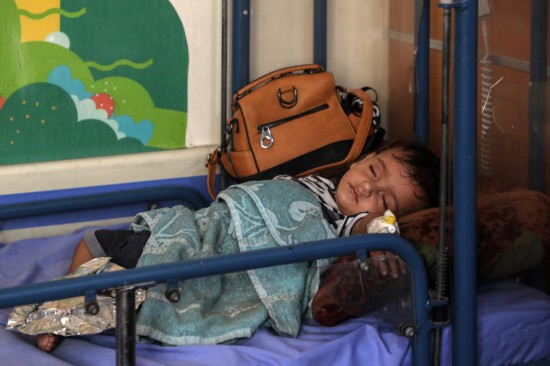這是7月23日在加沙城一所醫(yī)院里拍攝的營養(yǎng)不良的兒童。新華社發(fā)(里澤克·阿卜杜勒賈瓦德攝)