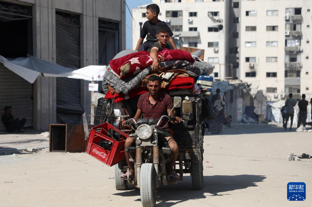 9月6日,巴勒斯坦人攜帶家當(dāng)逃離加沙城。