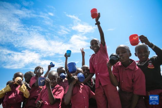 這是9月1日在位于肯尼亞西南部納羅克郡的光明小學(xué)拍攝的吃午飯的學(xué)生們。