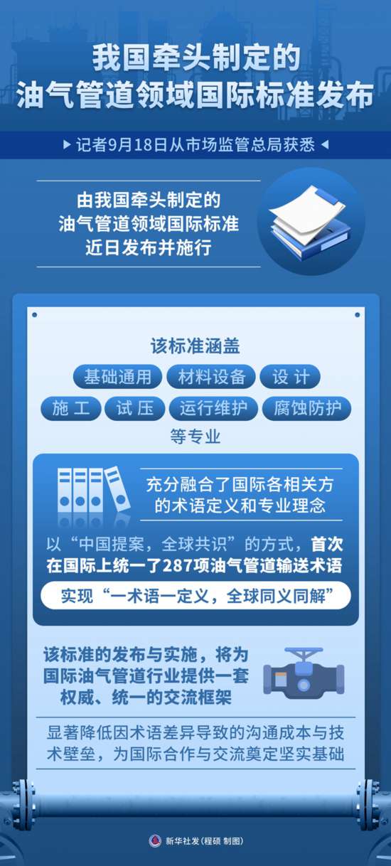 新華社北京9月18日電(記者趙文君)記者18日從市場監(jiān)管總局獲悉,由我國牽頭制定的油氣管道領(lǐng)域國際標(biāo)準(zhǔn)近日發(fā)布并施行。