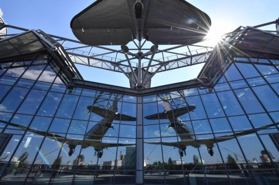 2024年5月17日,一架飛機在位于柏林的德國科技博物館航空展區(qū)展出。新華社記者任鵬飛攝