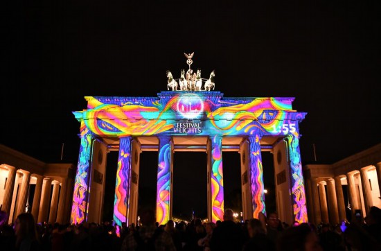 2023年10月6日,德國柏林勃蘭登堡門被燈光點亮。新華社記者任鵬飛攝