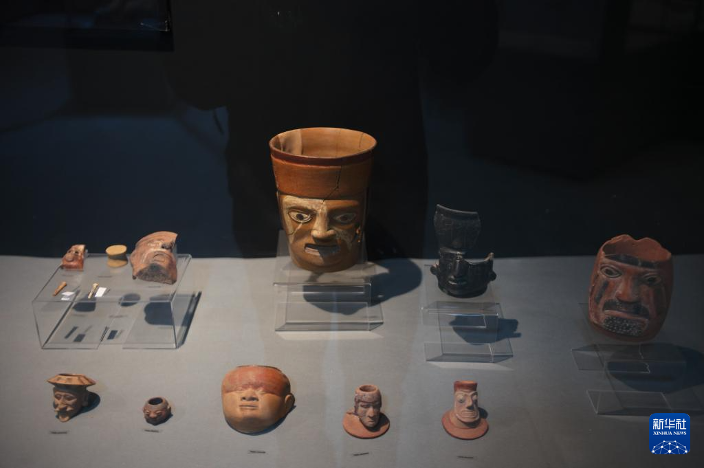 這是8月19日在玻利維亞蒂亞瓦納科陶瓷博物館拍攝的展品。