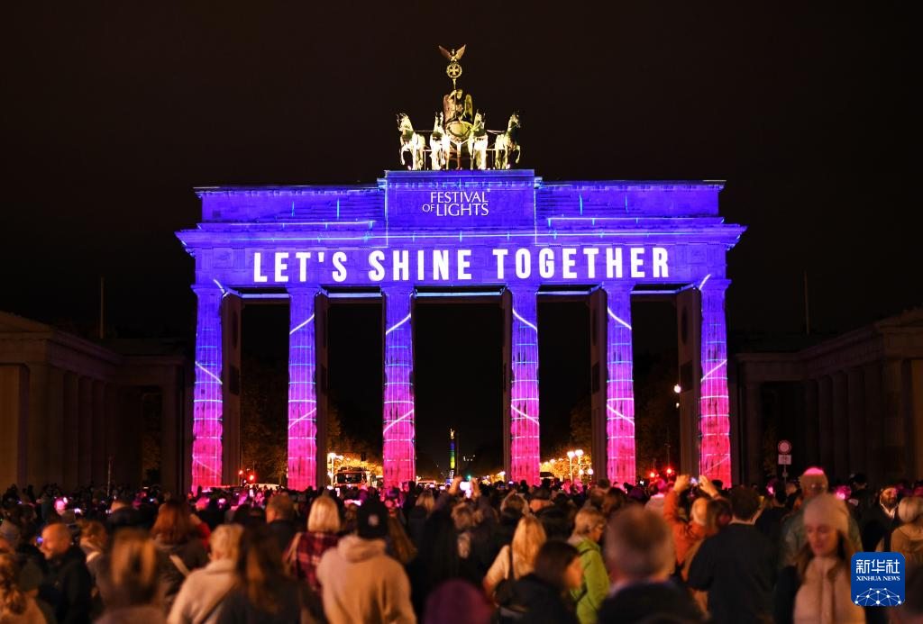 10月9日,德國柏林勃蘭登堡門被燈光點亮。