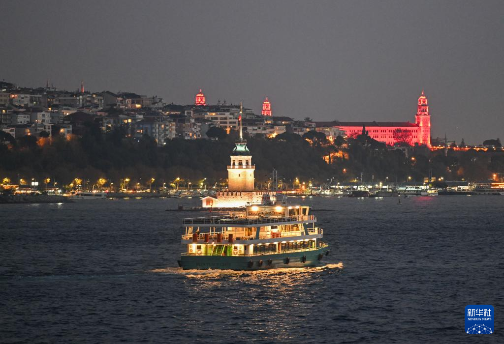 夜幕降臨,博斯普魯斯海峽上船只穿梭,兩岸燈火璀璨。